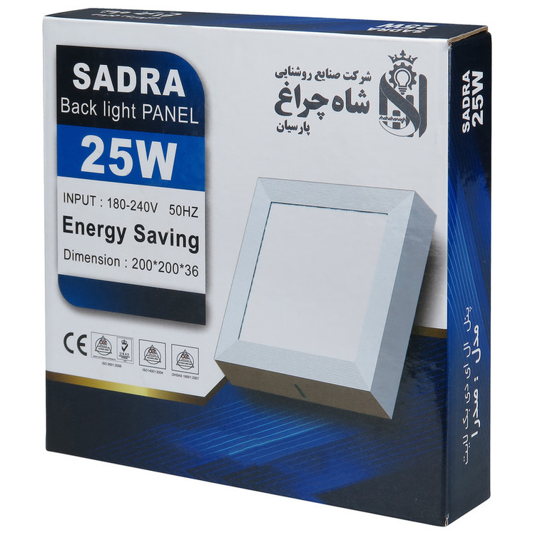 پنل ال ای دی شاهچراغ مدل صدرا با توان 25 وات واقعی و شدت نوری 90 لومن / وات می باشد. این پنل بدون سو سو زدن است و چشم را اذیت نمی کند.