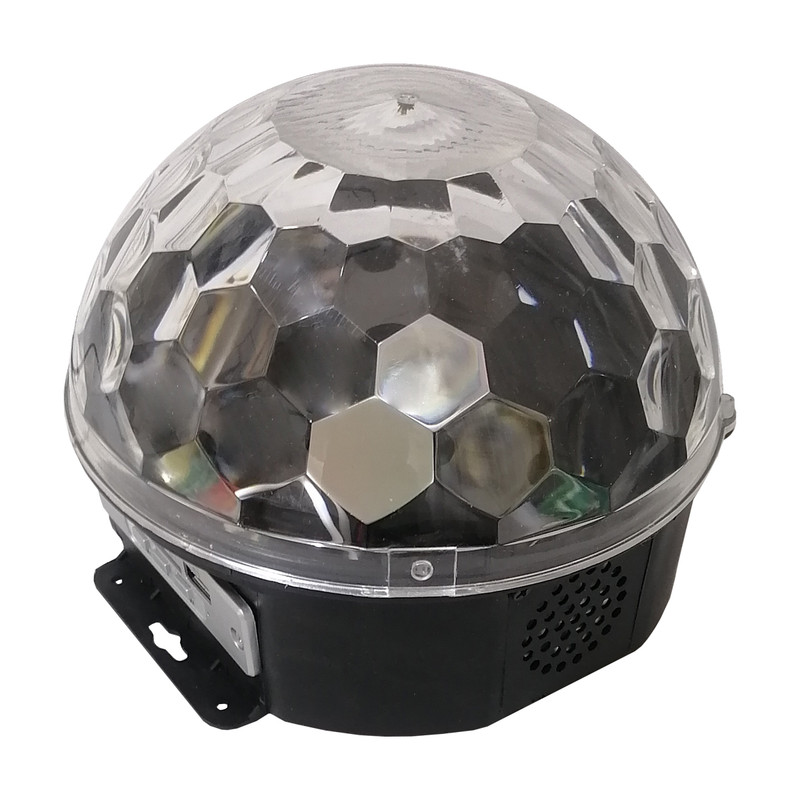 چراغ رقص نور موزیکال مجیک بال مدل usb با نورافشانی فوق العاده زیبا به مجالس زیبایی دو چندان می دهد . این چراغ که شبیه به یک توپ شیشه ای کریستالی است هماهنگ با آهنگ در حال پخش از دستگاه نور افشانی می کند . رقص نور موزیکال مجیک بال یک رقص نور ریموت دار با یک ورودی USB می باشد که می تواند موسیقی دلخواه شما را از یک حافظه خارجی بازخوانی نموده و از طریق بلندگوهای خود پخش نماید.ریموت کنترل این محصول برای تنظیم موسیقی طراحی گردیده تا بتوانید به راحتی ، موسیقی قبلی و بعدی را انتخاب کنید صدای بلندگوها را زیاد کنید و یا پخش موسیقی را متوقف کنید.