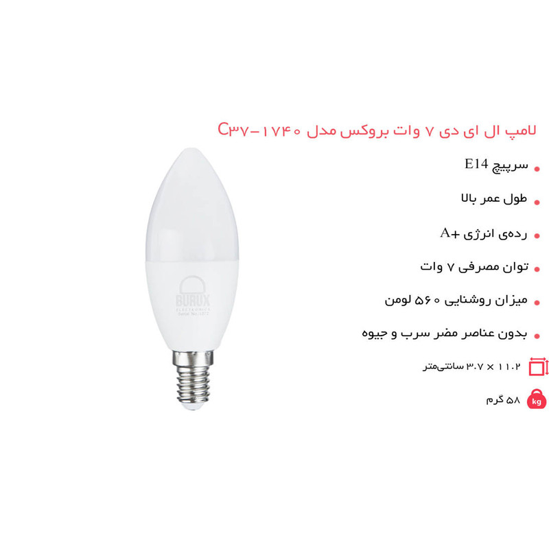 لامپ ال ای دی 7 وات بروکس مدل ۱۳۷۲ پایه E14 بسته 3 عددی