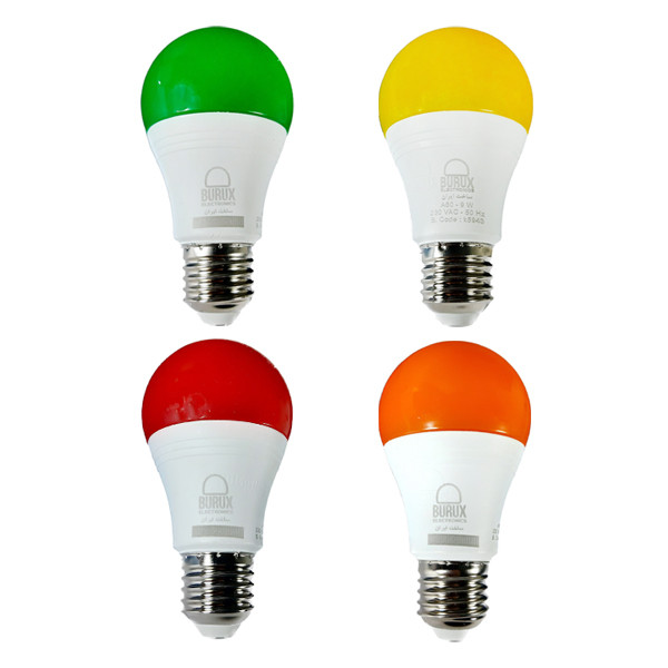 لامپ ال ای دی 9 وات بروکس مدل BRX رنگی پایه E27 بسته 4 عددی