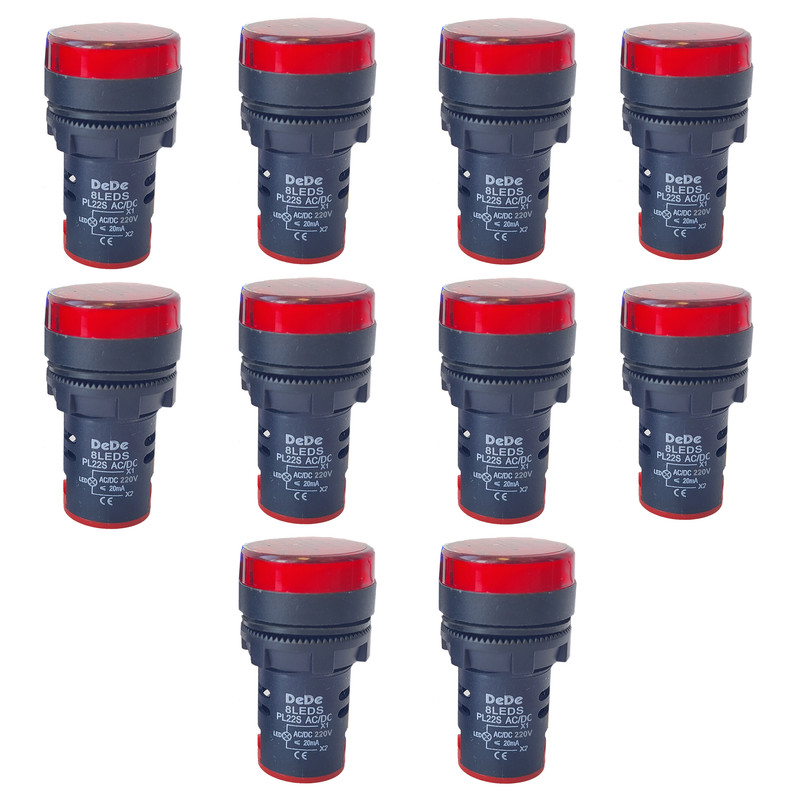 چراغ سیگنال قرمز ده ده مدل PL22-S220RD مجموعه 10 عددی