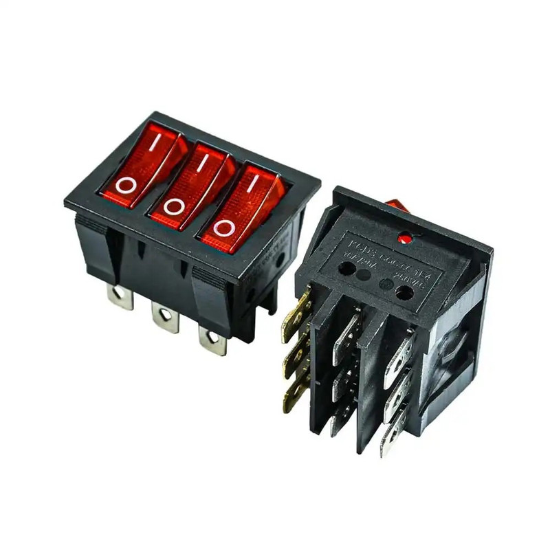 کلید روشن و خاموش یا کلید قطع و وصل 0 و 1 که آن را کلید راکر نیز می نامند معمولا در دستگاه های صنعتی استفاده می شود. اما از کلید راکر 3 پل چراغدار معمولا در انواع هود و کلید راکر هواکش و کلید راکر 3 پل 9 پین بخاری برقی بهره برده می شود.