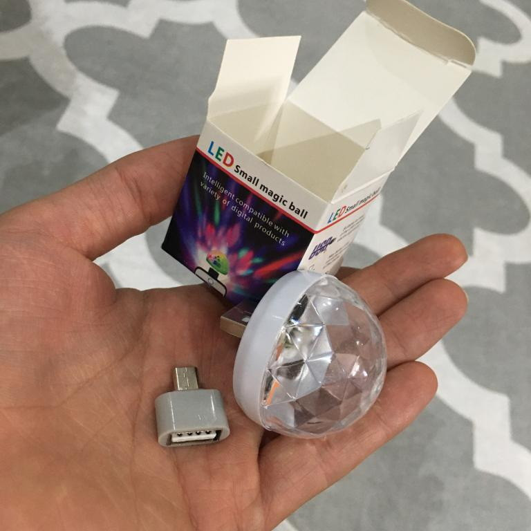 اسمال مجیک بال یک پکیج کوچک رقص نور است که با اتصال به موبایل (از طریق رابط OTG) نورهای زیبا و جالبی را تولید میکند. این مدل فقط بصورت پیشفرض انواع رقص نورها را تولید میکند، یعنی میکروفن داخلی ندارد و لزوما بر اساس ریتم یا فاز موسیقی عمل نمیکند. خوبی این حالت این است که با اتصال به پاور بانک یا حتی کلگی شارژر هم روشن شده و ریتمهای زیبایی را تولید میکند. این مدل دارای 3 چراغ LED میباشد که ترکیب آنها رنگهای زیبایی را تولید میکند. این محصول برای بازی و سرگرمی، مراسم مجالس عروسی و جشن تولد، سالگرد ازدواج خصوصی و هر مناسبتی که میخواهید به سرعت فضای آن مجلس را تبدیل به یک میهمانی با نشاط و ویژه کنید مناسب است. آن هم بدون نیاز به دستگاههای رقص نور لیزری گرانقیمت. شما میتوانید با بردن این وسیله کوچک و کاربردی به یک میهمانی ساده، در عرض یک دقیقه آنجا را به یک میهمانی خوب و به یاد ماندنی برای میهمانان و میزبانان تبدیل کنید و این بهترین کادو و هدیهای ماندگار و دوست داشتنی از طرف شما برای میزبان خواهد بود. رویه طلقی مشجر این لامپ رقص نور USB بسیار شفاف و روشن بوده تا نورهای رنگی را به خوبی از خود عبور دهد. با استفاده از این دستگاه رقص نور در مکانهای مختلف منزل به ویژه اتاق کودک دلبندتان، شور و شادی را برای خانواده خود به ارمغان ببرید. داشتن این وسیله کوچک رقص نور میتواند زندگی را از حالت روتین و تکراری خارج کند و کمی حس زنده بودن به زندگی تزریق کند. برای نصب رقص نور USB نیازی نیست کار خاصی انجام دهید، فقط کافیست آن را با تبدیل OTG که دارد به تلفن همراه و به یو اس بی کامپیوتر، لپ تاپ، تلویزیون یا هر وسیلهی الکترونیکی دارای خروجی یو اس بی وصل کرد. ضمنا این پکیج شامل تبدیل OTG از نوع Type-B (اندروید معمولی) می باشد..