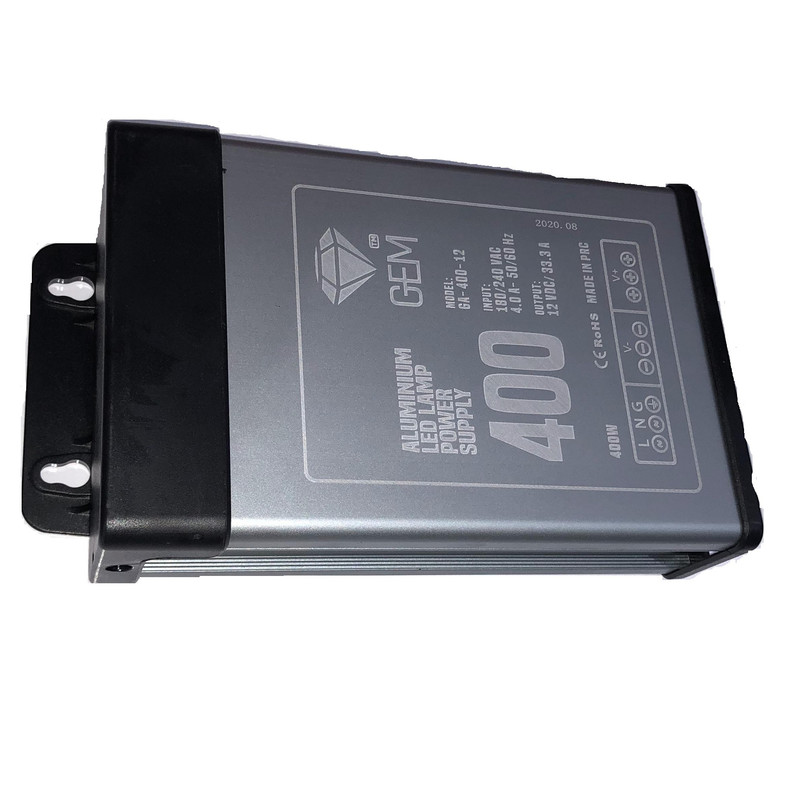 منبع تغذیه سوییچینگ 12 ولت 33.3 امپر 400 وات برند جم ساخت کشور چین با کیفیت بسیار عالی مقاوم در برابر گرد و غبار و سازگار با مناطق گرمسیری و اب و هوای رطوبتی میباشد .